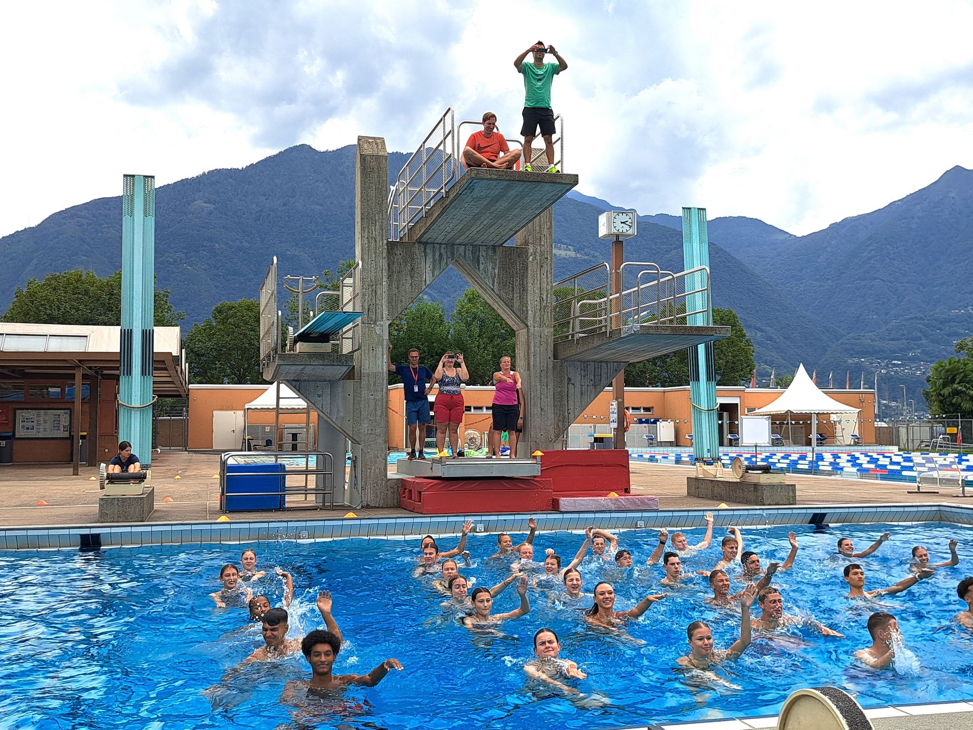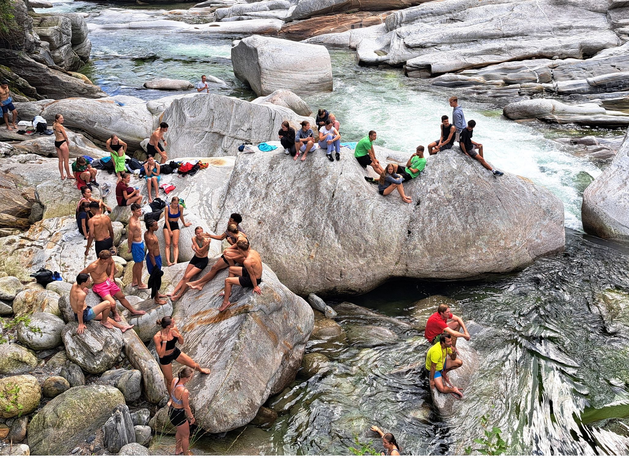 So startete die Woche mit lockerem Training unter Sven Rees, Cathleen Tschirch, Christoph Thürkow, Steffen Hertel, Carolin Streipart und Florian Bauder, das sich mit zahlreichen In- und Outdoor-Aktivitäten, wie Squash, Tennis, Beach-Volleyball, Bogenschießen, Street Racket oder Stand-Up-Paddle abwechselte. Ein besonderes Highlight war der Ausflug ins Verzasca-Tal, wo man auf der berühmten Staumauer „Wahnsinnige“ beim Bungee-Jumping oder beim Bouldern in 150 Meter Höhe beobachten konnte. Ein paar Kilometer stürzten sich zahlreiche Athletinnen und Athleten dann in die recht frische Verzasca.