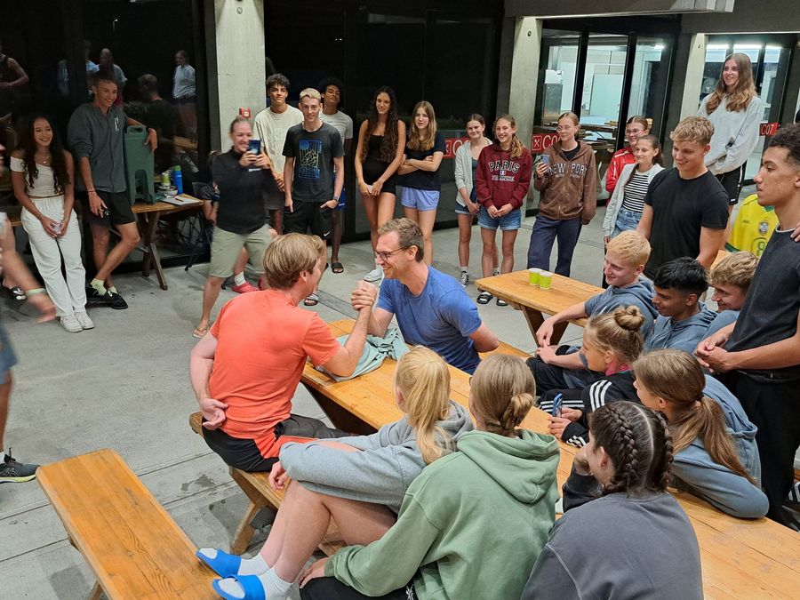 Nachdem Rebekka Feirle und Antonia Heberle den „Campern“ von ihren Erfahrungen und Erlebnissen bei den U18-Europameisterschaften in der Slowakei berichtet hatten, gaben die Trainer an einem „Schule und dann?“-Abend einige Beispiele und Erfahrungen ihrer älteren Athlet/innen parat. Ob freiwilliges soziales Jahr, Engagement bei Bundeswehr, Ausbildung bei der Polizei oder Bundeswehr, Lehramts- oder Auslandsstudium – es kam so einiges auf den Tisch, was bei den Athleten auf Interesse stieß. Marie Burtz und Maike Gondro, die als Vertrauenspersonen der Landesverbände die Woche mit dem außersportlichen Rahmenprogramm begleiteten, leiteten die Jugendlichen in einem kurzen Themenabend zur Selbstreflexion an.